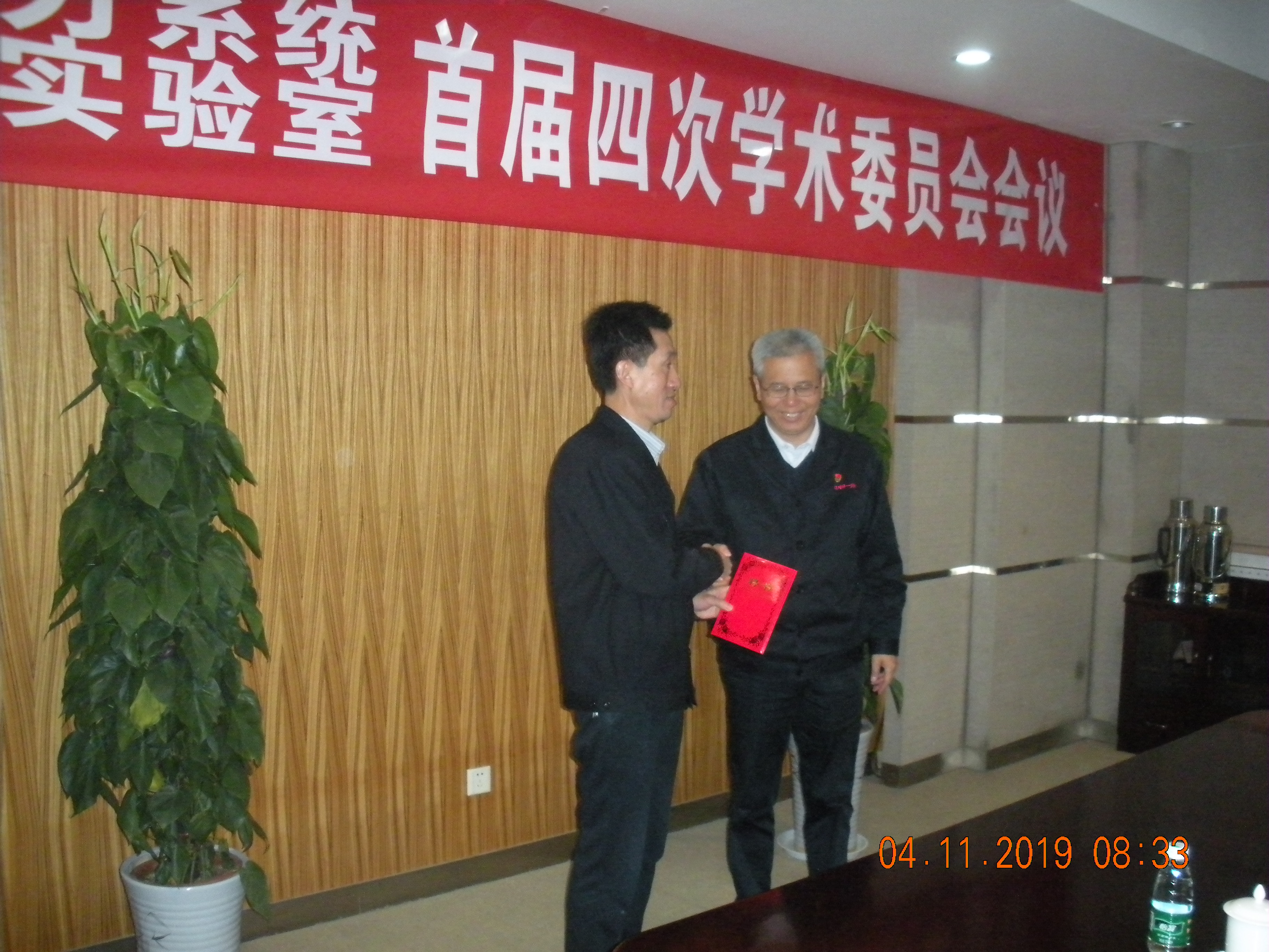 首屆四次學委會會議現場 黎董事長給趙一榮頒發實驗室副主任聘任證書 陳學庚院士做學術報告